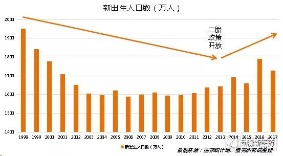 国家统计局数据显示,我国新出生人口出现长期下降的趋势。在2013年正式实施“二孩”政策之前,新出生人口数量由1998年的1951万下降到了2013年的1644万,而出生率则由15.64‰下降到了12.07‰。
