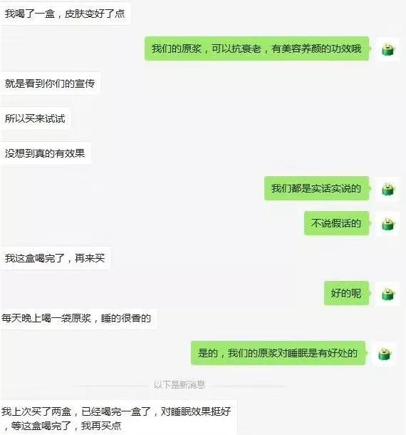 另外原浆中富含的多种氨基酸等成分,对调节血气,补充气色有很大的改善作用,坚持每天喝一袋,面色红润春常在。