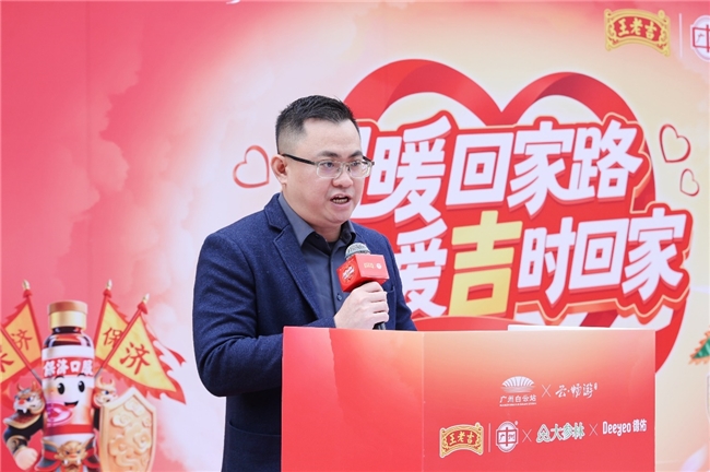 广东省让爱回家公益促进会梁冬飞会长表示:“‘让爱回家’的核心宗旨,就是搭建起团圆的桥梁,让每一位游子都能平安奔赴家园,让每一个家庭都能圆满相聚。本次与王老吉药业、大参林、德佑的携手,正是公益力量的深度融合——我们发挥资源统筹优势,王老吉以食品、药品矩阵提供健康支撑,大参林以终端渠道保障服务落地,三方联动让‘爱’不仅有温度,更有实打实的健康守护,这也是对‘让爱回家’意义的最好诠释。”