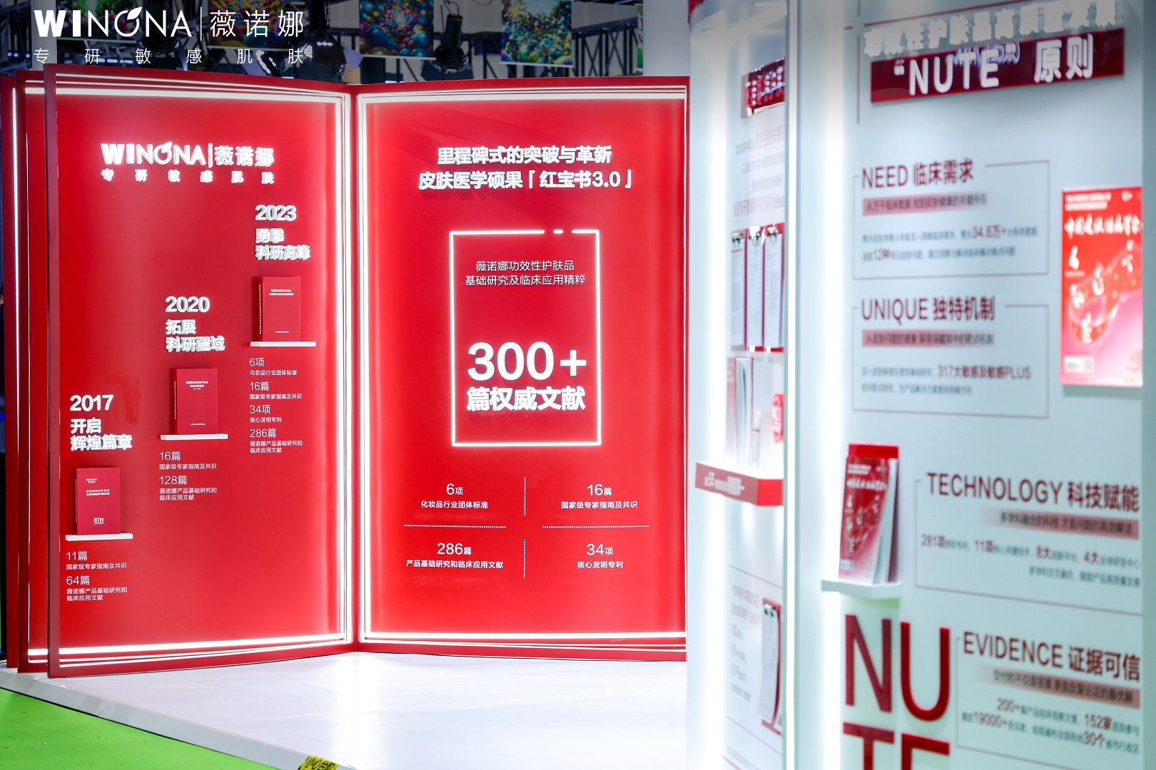 其中,薇诺娜学术积淀的代表性成果——红宝书3.0(《薇诺娜功效性护肤品基础研究及临床应用精粹》)正是这一体系化努力的缩影。自2017年首版问世以来,红宝书从仅收录11篇国家级专家指南及共识、64篇科研与临床文章,发展到如今的3.0版本,已汇集300余篇权威文献,包括16篇国家级专家指南与共识、34项国家发明专利、6项行业团体标准以及近300项基础研究与临床验证成果。这不仅体现了薇诺娜科研体系的持续进化,也记录了中国功效护肤学术体系的成长与完善。