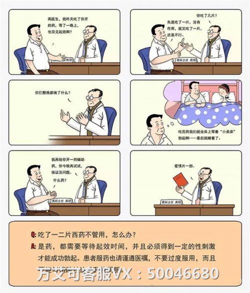 对于很多中国试验者来说,“蓝色小药片”充满了神秘色彩。“有个老人家吃了药之后,老两口你看报纸我看电视,没什么事就睡着了,第二天来了就说大夫你这药不对啊,万艾可官方客服阿真为大家解答,“万艾可如何服用呢?万艾可需要在夫妻生活前30分钟-1小时服用,建议空腹,吃饭的话饭后两小时再用药,因为食物会影响万艾可的吸收,增加药物起效时间,万艾可50mg能延时多久?万艾可功效又持续多久?从服用后万艾可药效可以维持6小时左右,万艾可不是春.药,必须有性刺激。一般年轻人可能聊聊天,或者看点什么电影就起来了,但是有些很严重的,比如有些糖尿病人十几二十年都没勃.起了,这样就必须有刺激才行。”