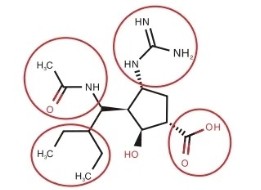 图3.帕拉米韦分子上存在多个(4个)可与流感病毒神经氨酸酶活性结合的位点
